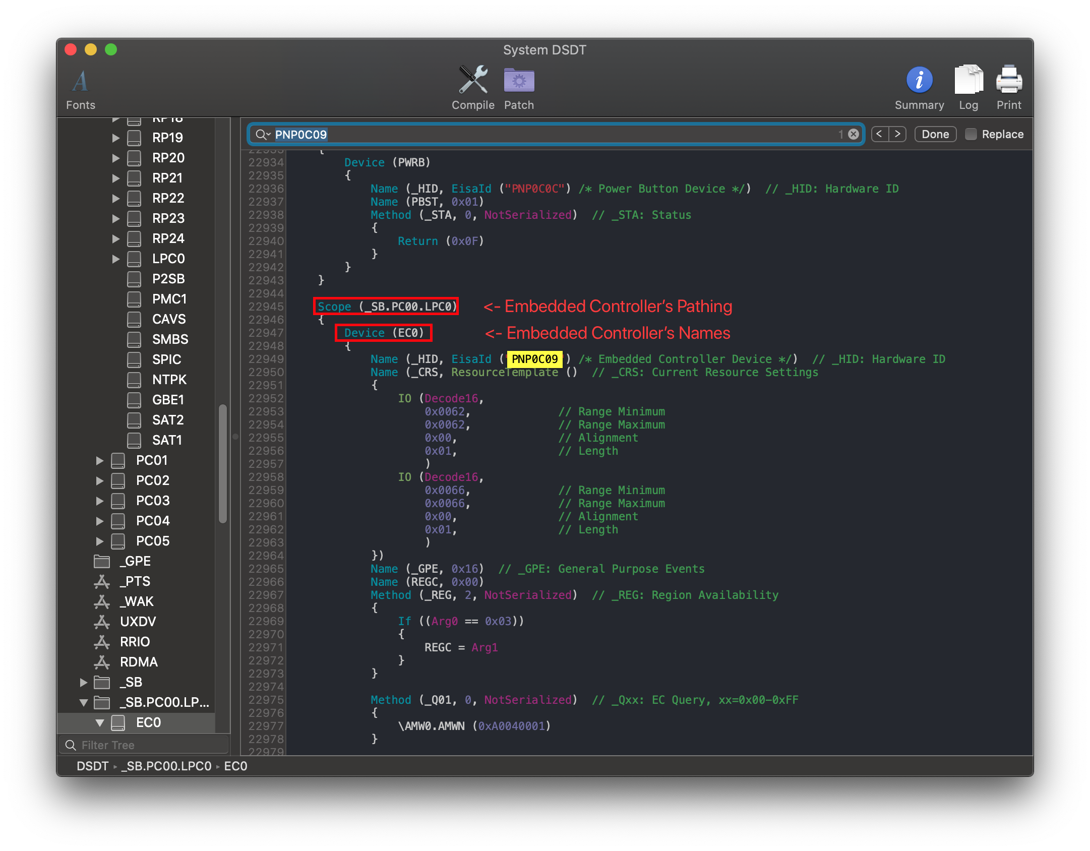 Finding the ACPI pathing is quite easy actually, first open your decompiled DSDT you got from Dumping the DSDT and Decompiling and Compiling with either MaciASL(if in macOS) or any other text editor if in Windows or Linux(VSCode has an ACPI extension that can also help).