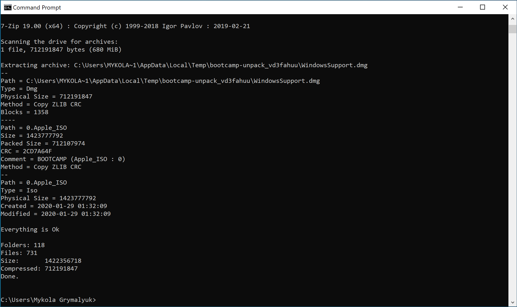 /Users/{Username}/BootCamp-{filename}/WindowsSupport.dmg
