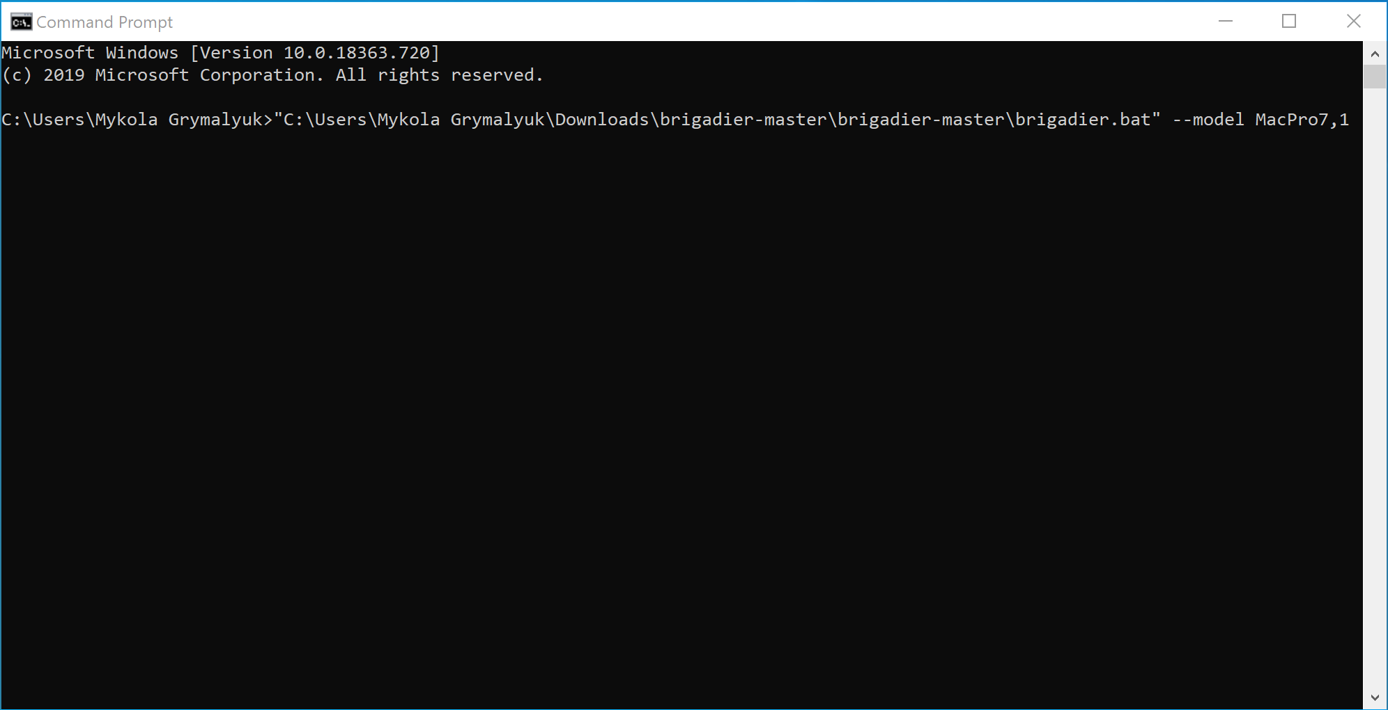 --model iMac19,1) and when running brigadier.