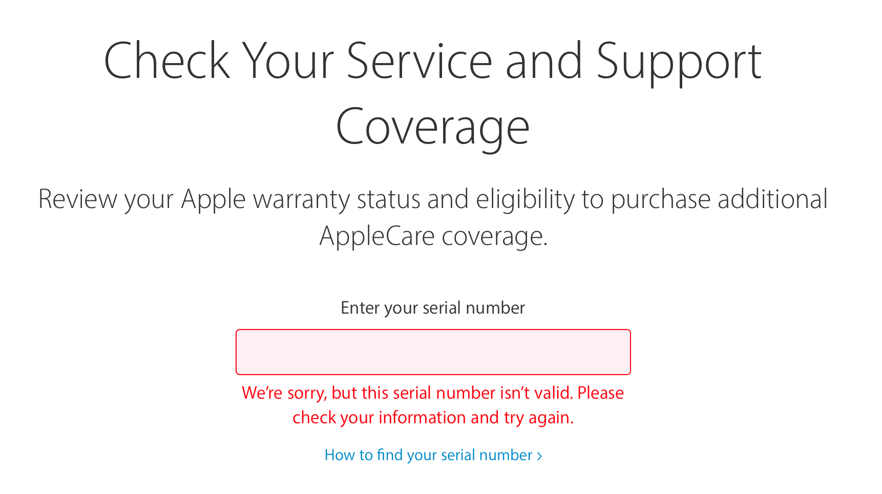 | We’re sorry, but this serial number isn’t valid | Valid Purchase date | Purchase Date not Validated |