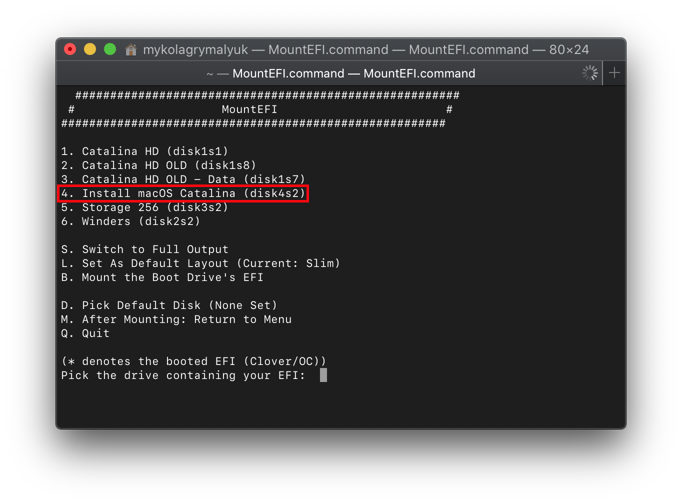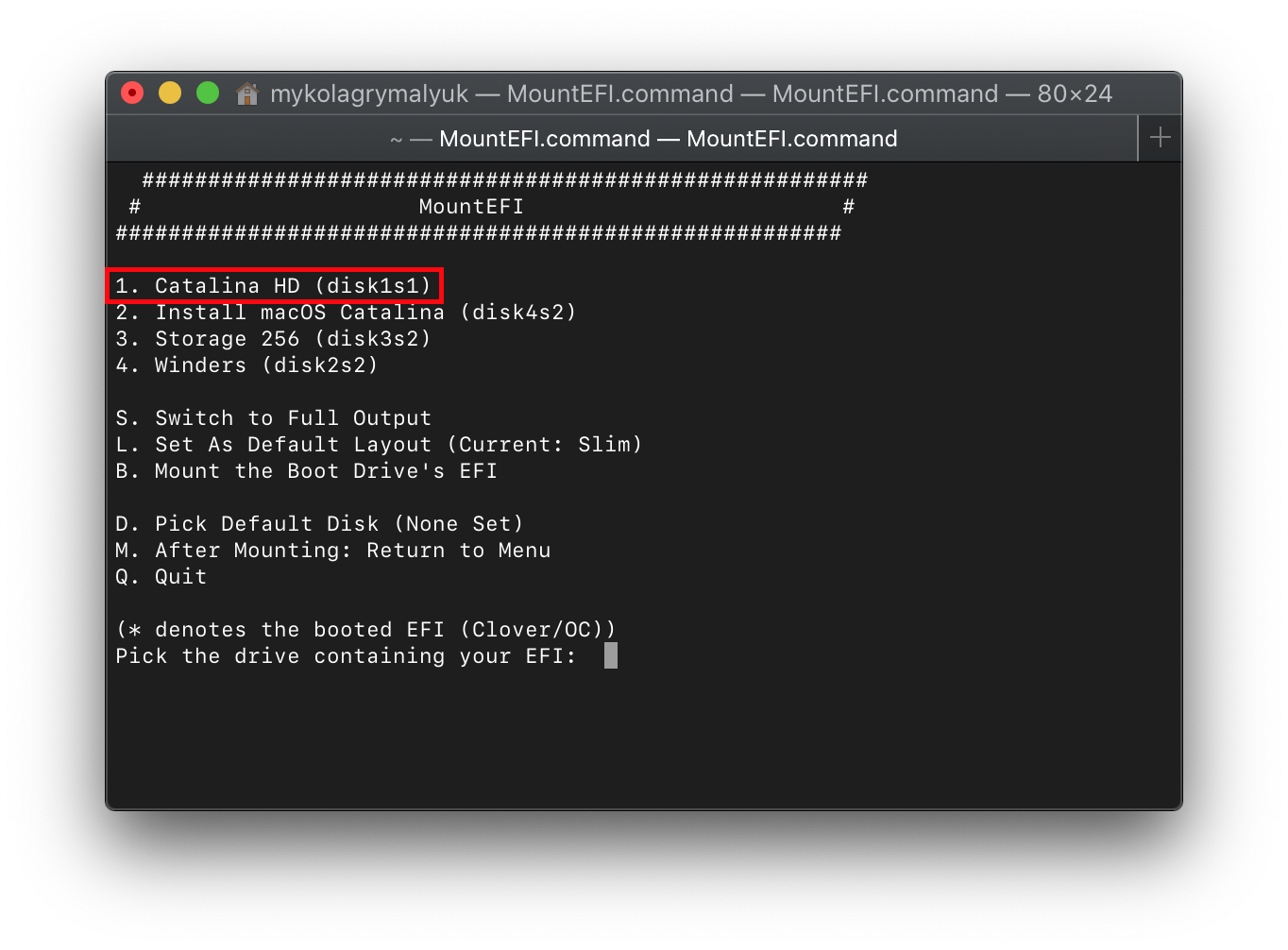 Now with this done, lets mount our macOS drive. With macOS Catalina, macOS is actually partitioned into 2 volumes: System Partition and User Partition. This means that MountEFI may report multiple drives in it's picker but each partition will still share the same EFI(The UEFI spec only allows for 1 EFI per drive). You can tell if it's the same drive with diskXsY (Y is just to say what partition it is)