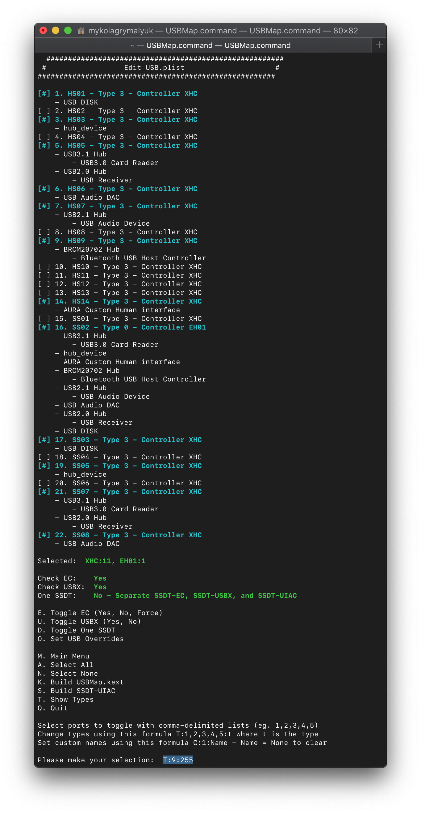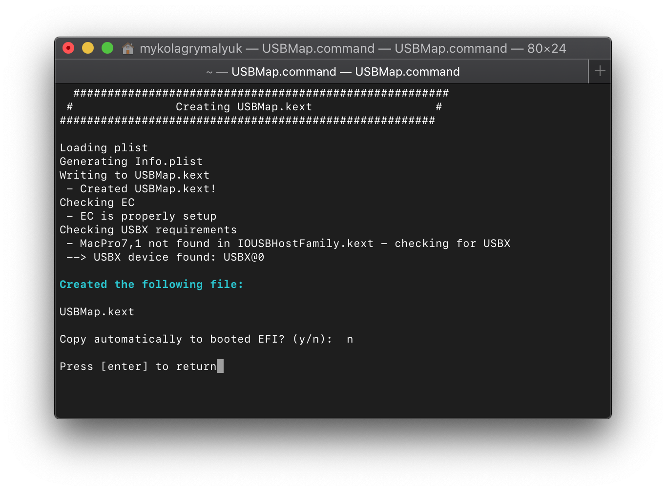 Now we can select K. Build USBMap.kext and let it build our kext for us.