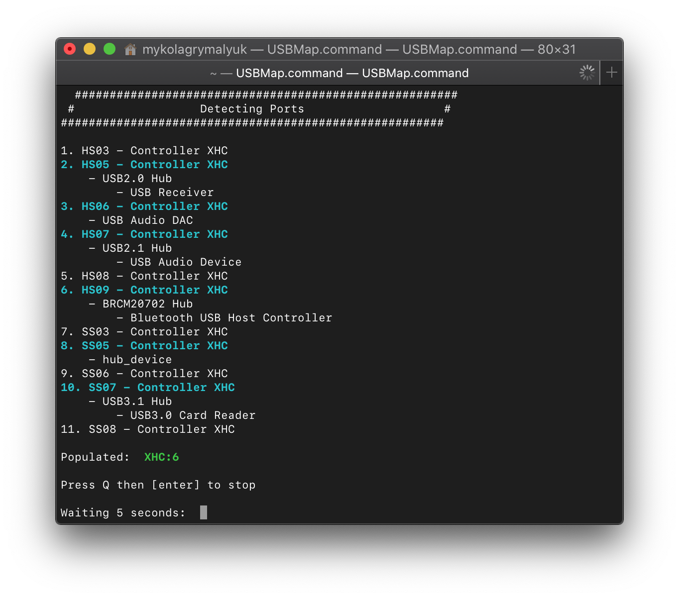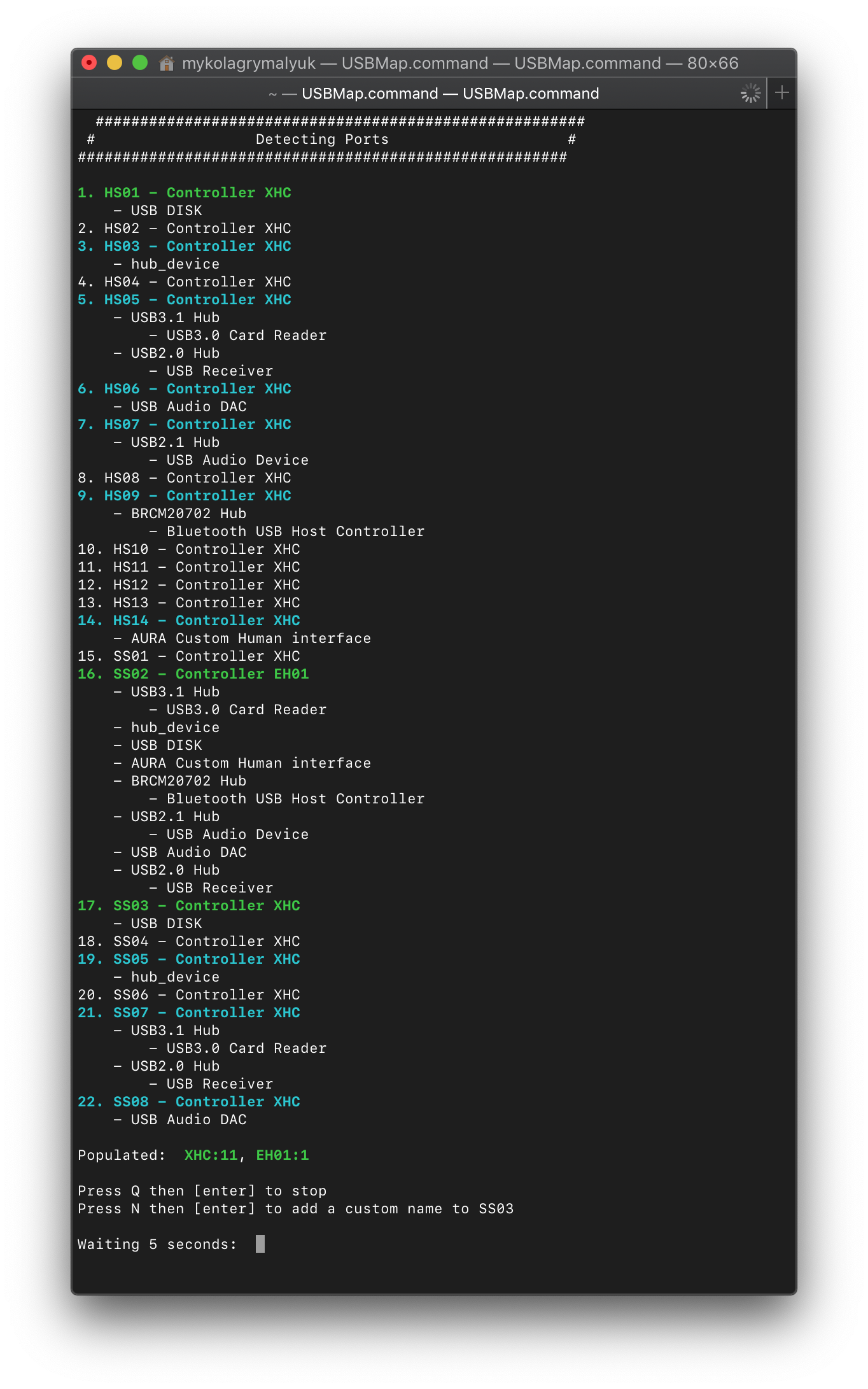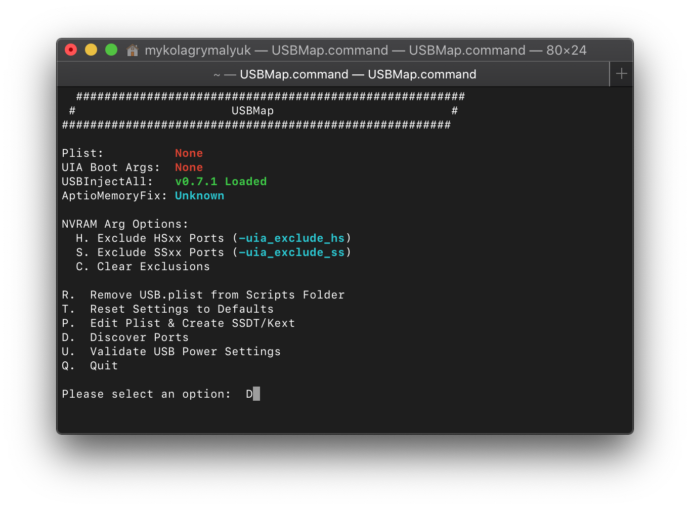 Now open up USBmap.command and select D. Discover Ports: