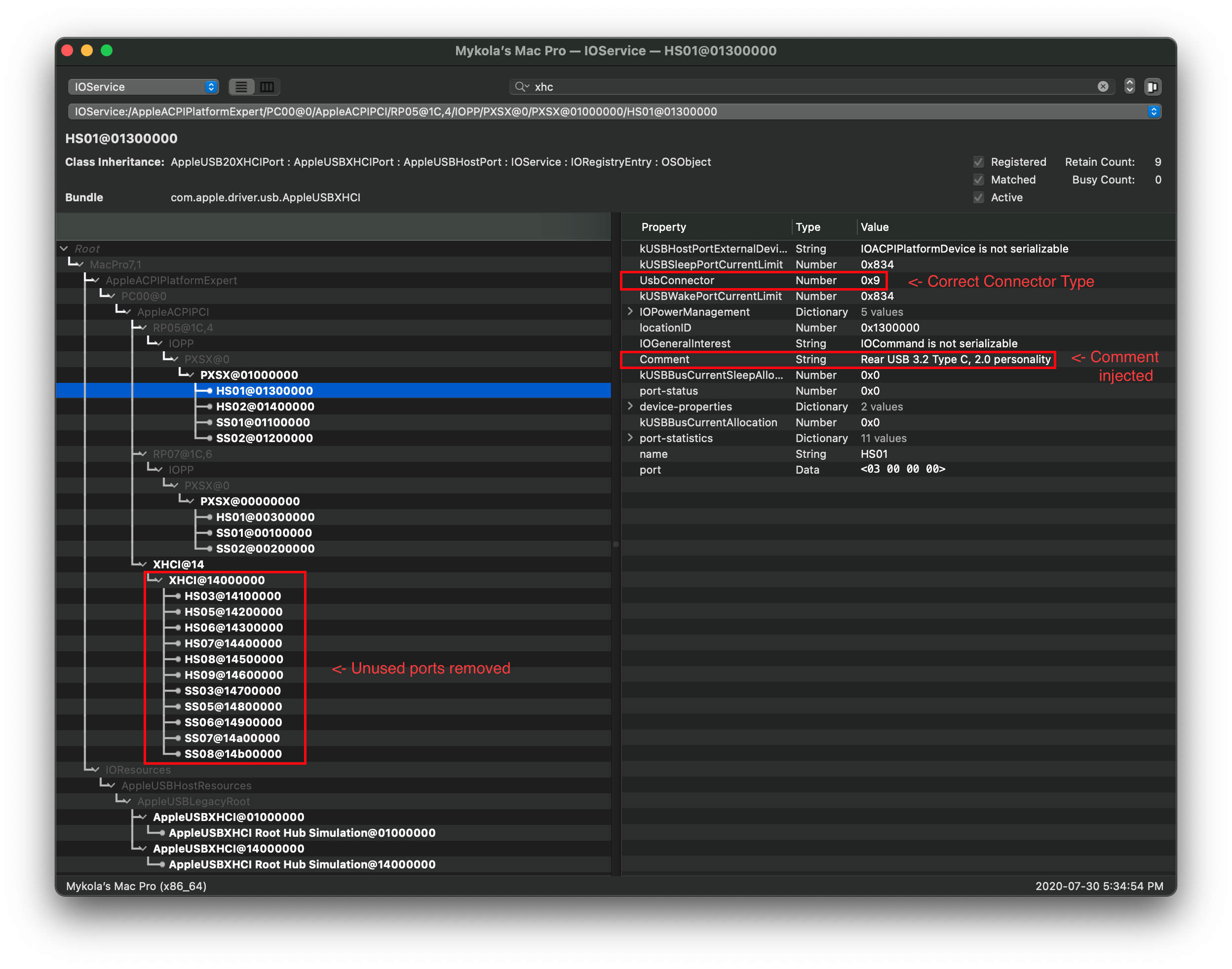 - Property Mapping: When no proper name is given(ie. AppleUSB30XHCIPort)