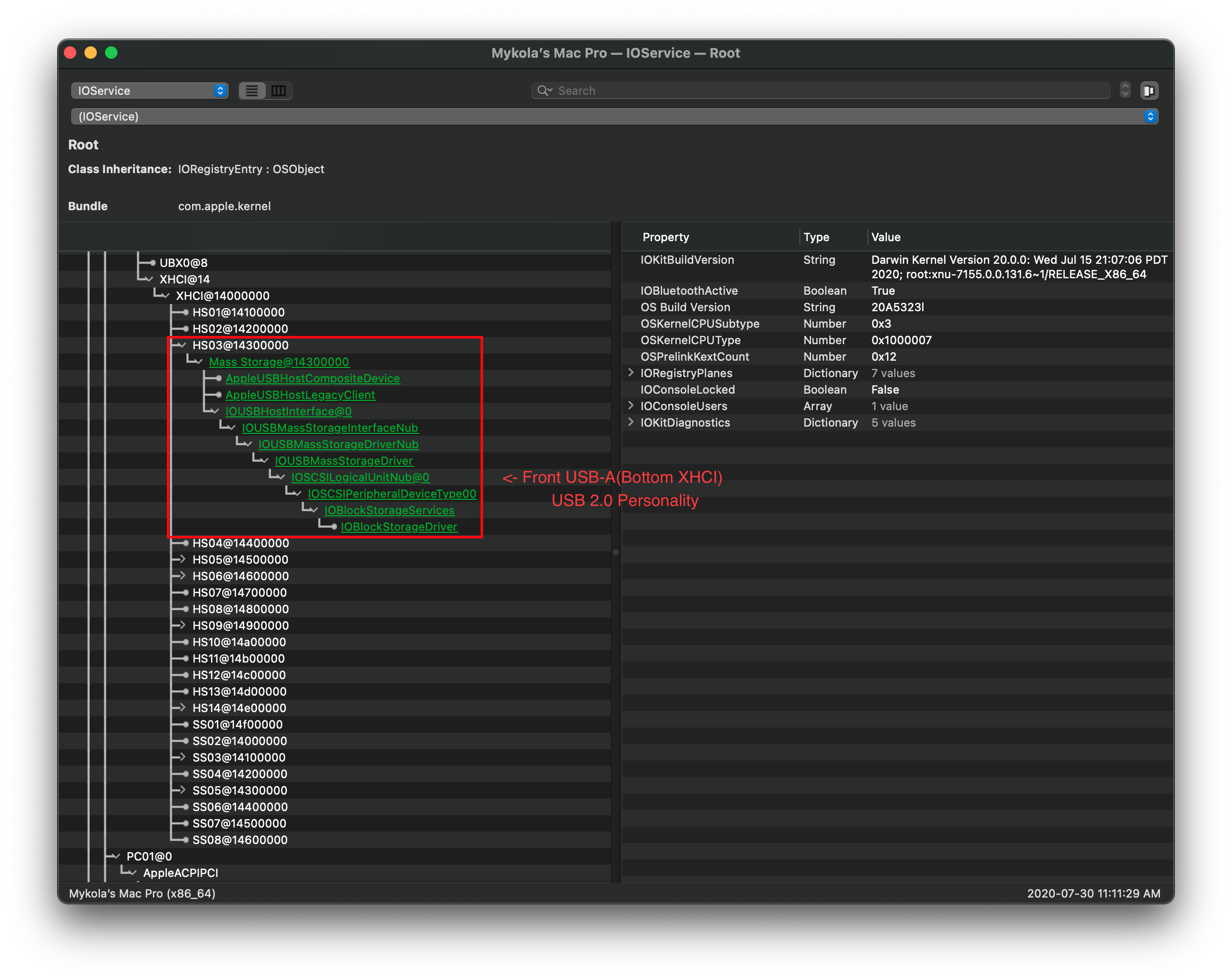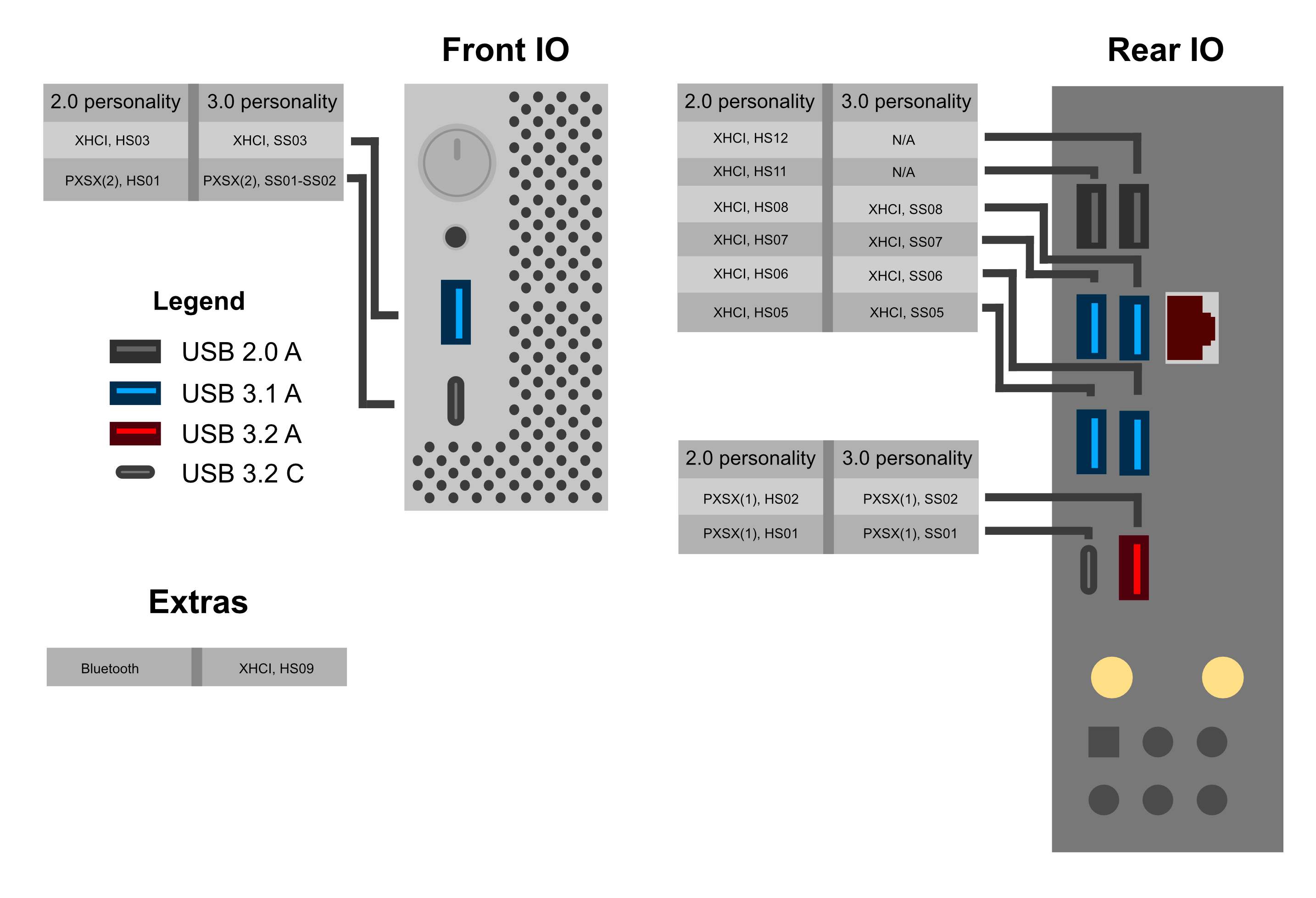 We see that the USB 2.0 personality of our 3.0 port is XHCI -> HS03, now you should be able to get an idea of what we're trying to do: