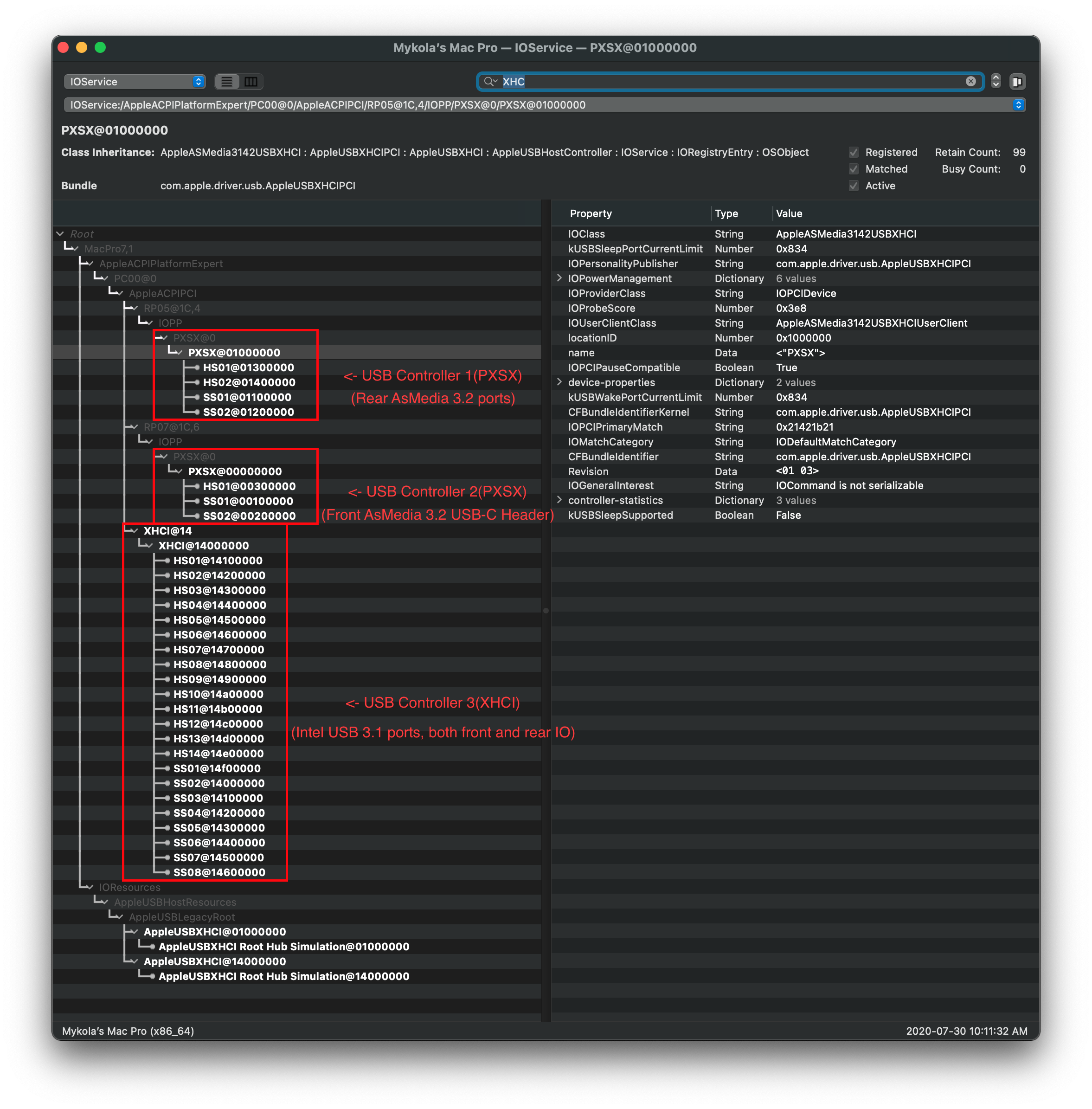 Note: The AppleUSBLegacyRoot entry is an entry that lists all active USB controllers and ports, these are not USB controllers themselves so you can outright ignore them.