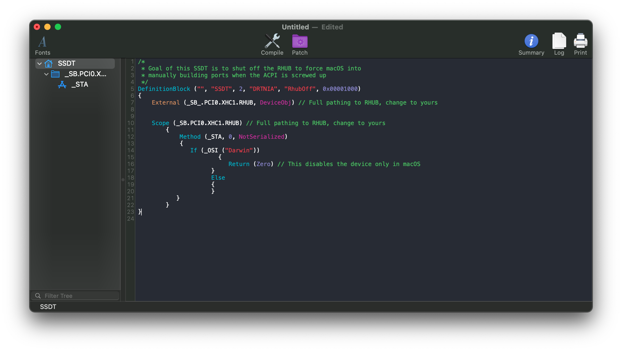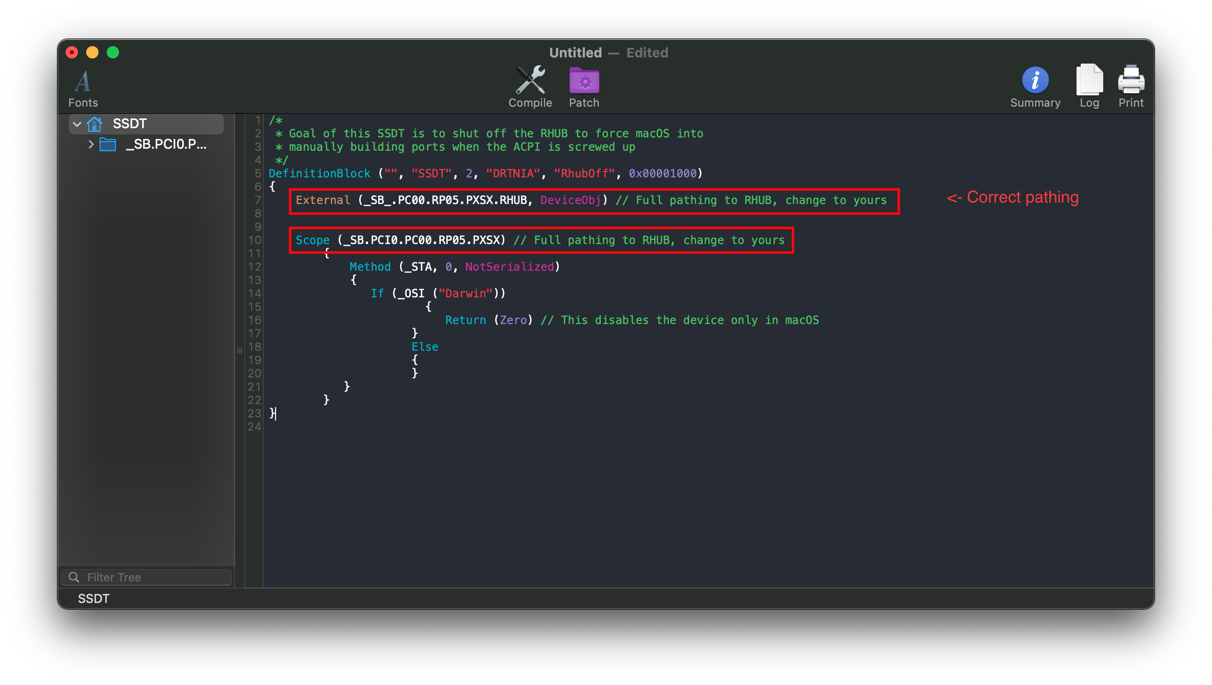 - Grab a copy of the SSDT: SSDT-RHUB.dsl