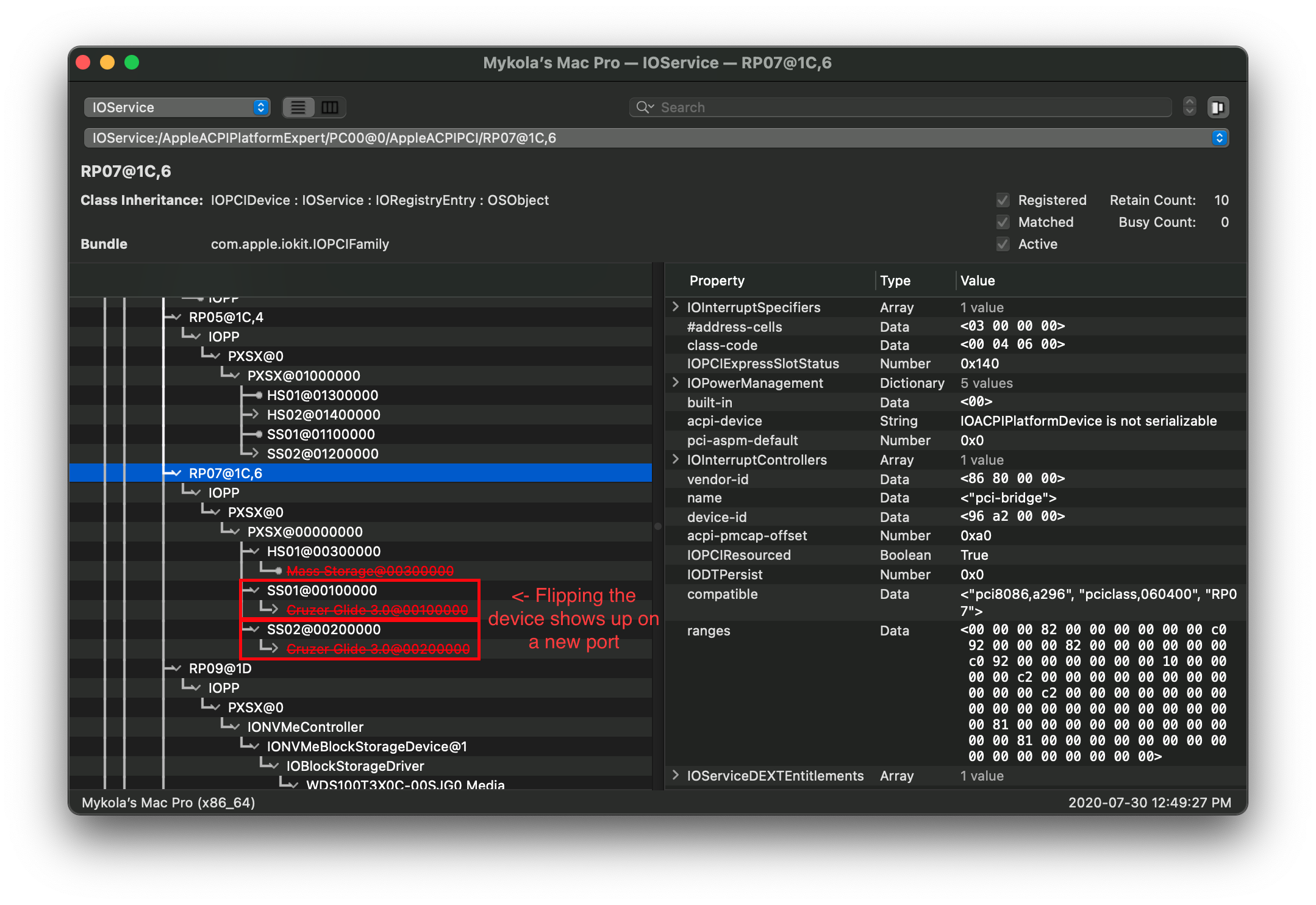 - Name Mapping: When a proper name shows up in IOReg(ie. HS01)
