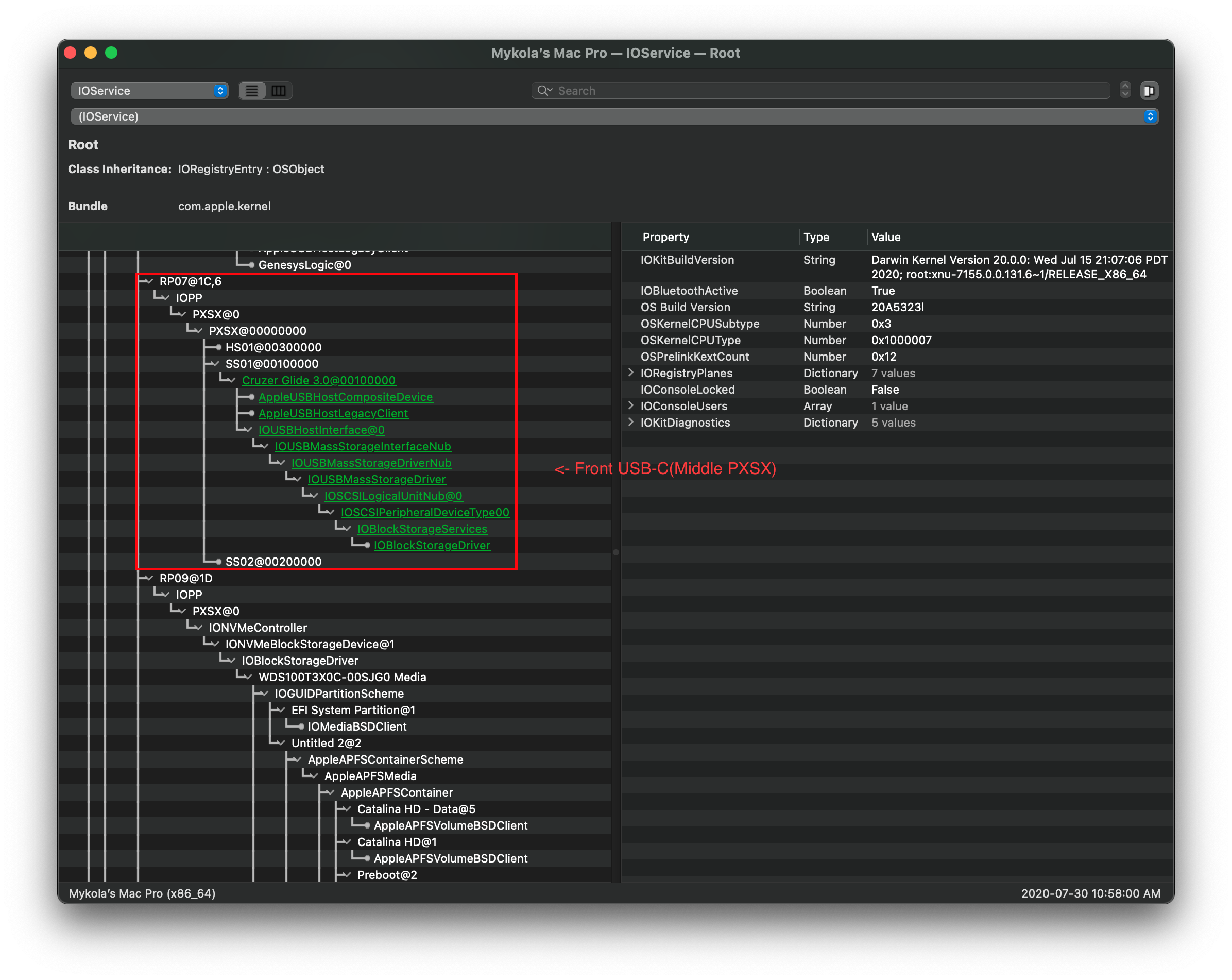 Following the example from above, we'll be renaming PCI0.XHC1.RHUB to PC00.RP05.PXSX.RHUB: