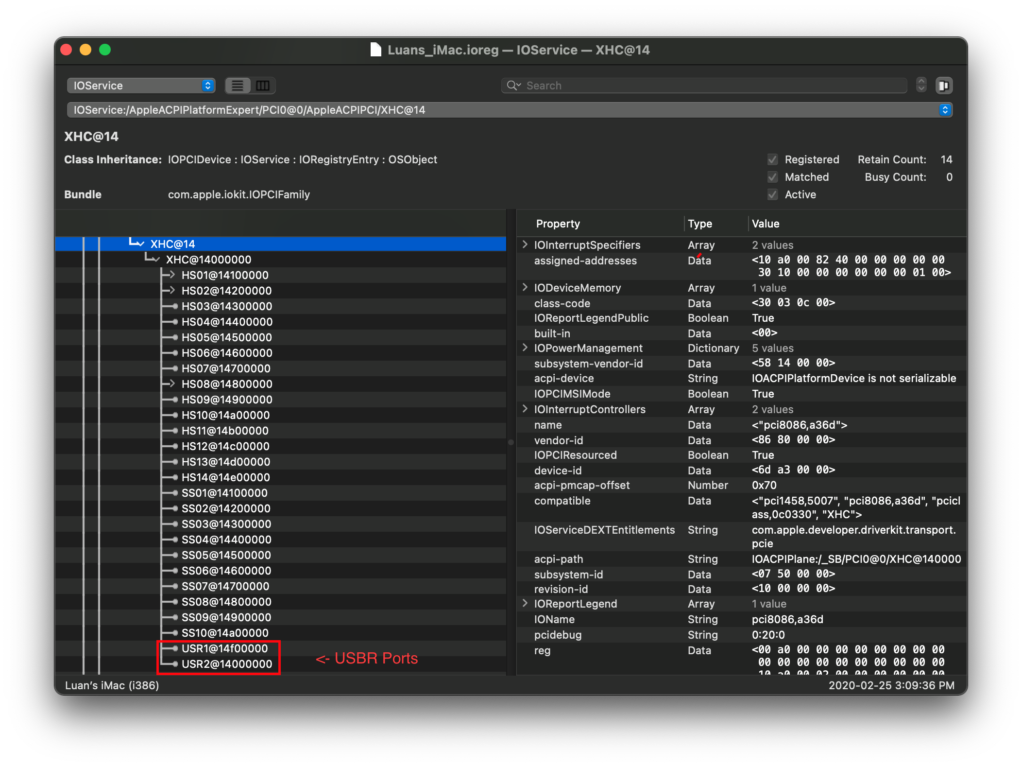 Now we can't take that value 1-1, instead we need to trim it to the Kext's short name being AppleUSBXHCIPCI(So we removed com.apple.driver.usb.)