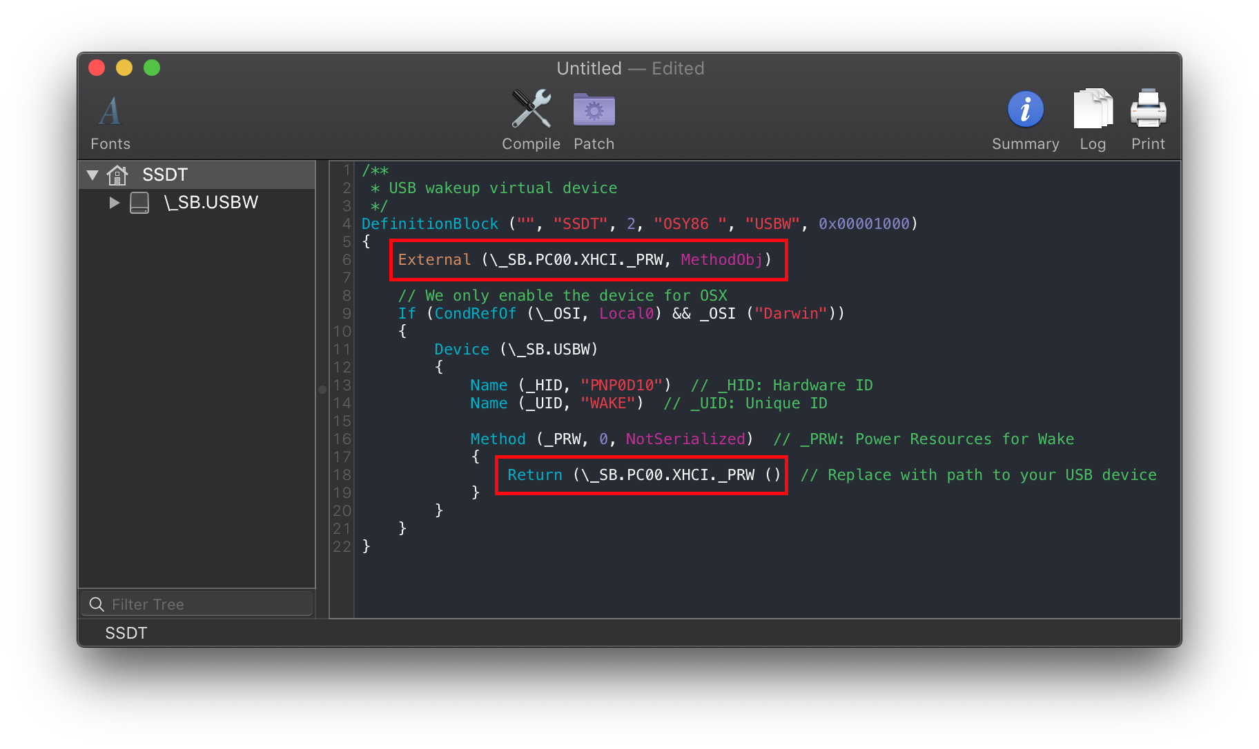 Now with that done, you can compile and add it to your EFI and config.plist. See Getting Started With ACPI for more info on compiling SSDTs