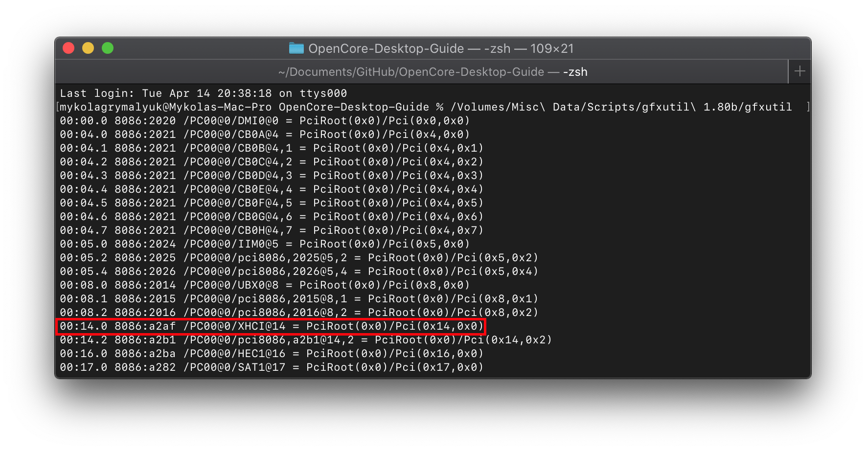 To start, we'll need to grab the PciRoot of our USB Controller(we'll use gfxutilopen in new window, Generally the names would be XHC, XHC1 and XHCI)