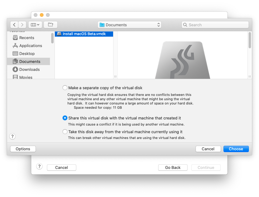 VMware non può leggere una immagine disco dmg, perciò dovremo convertirla come vmdk. Con una conversione, creiamo una nuova immagine disco: