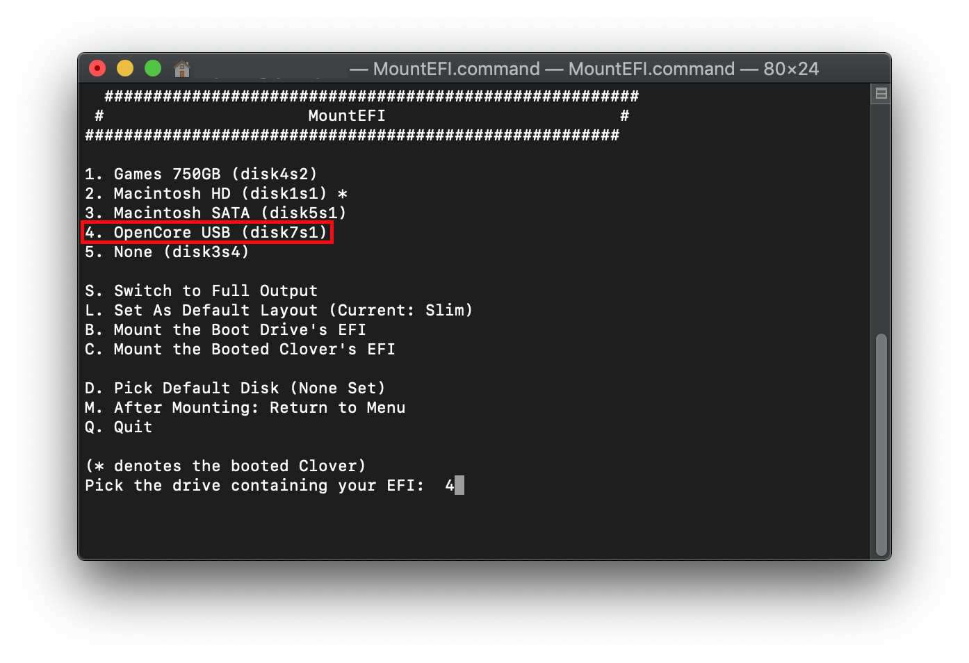 Impostare l'ambiente EFI di OpenCore è semplice – quello di cui hai bisogno è di montare la partizione EFI di sistema. Essa viene fatta automaticamente quando inizializziamo la chiavetta in GUID, ma di default non viene montata, e quindi ora è il momento in cui il nostro amico MountEFI entra nella scena: