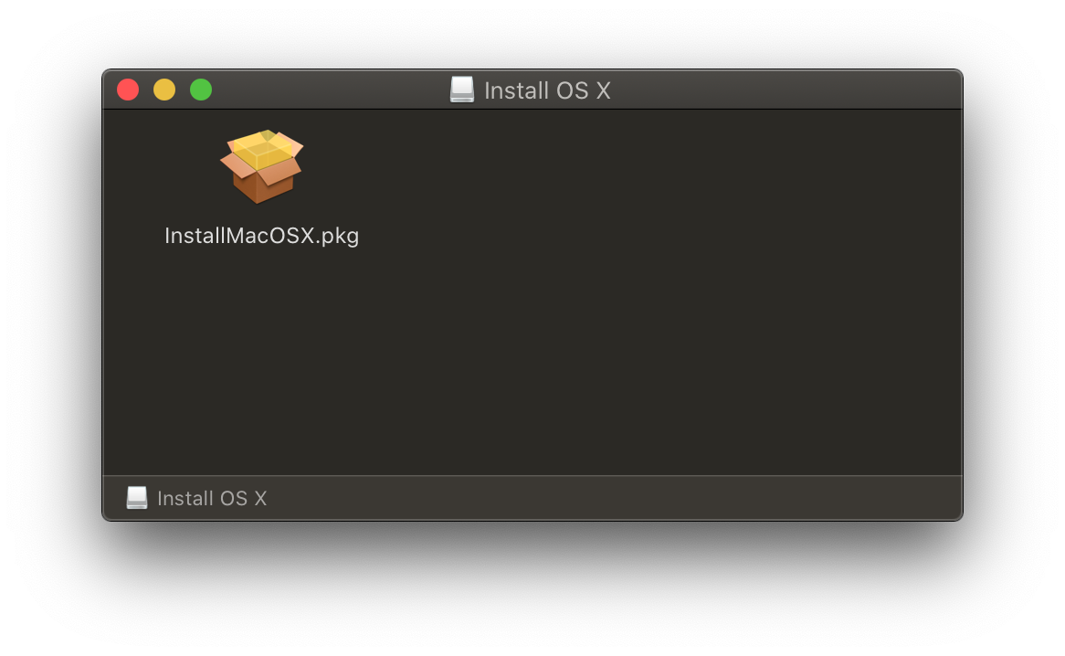 Per iniziare, trascina il InstallMacOSX/InstallOS.dmg e montalo: